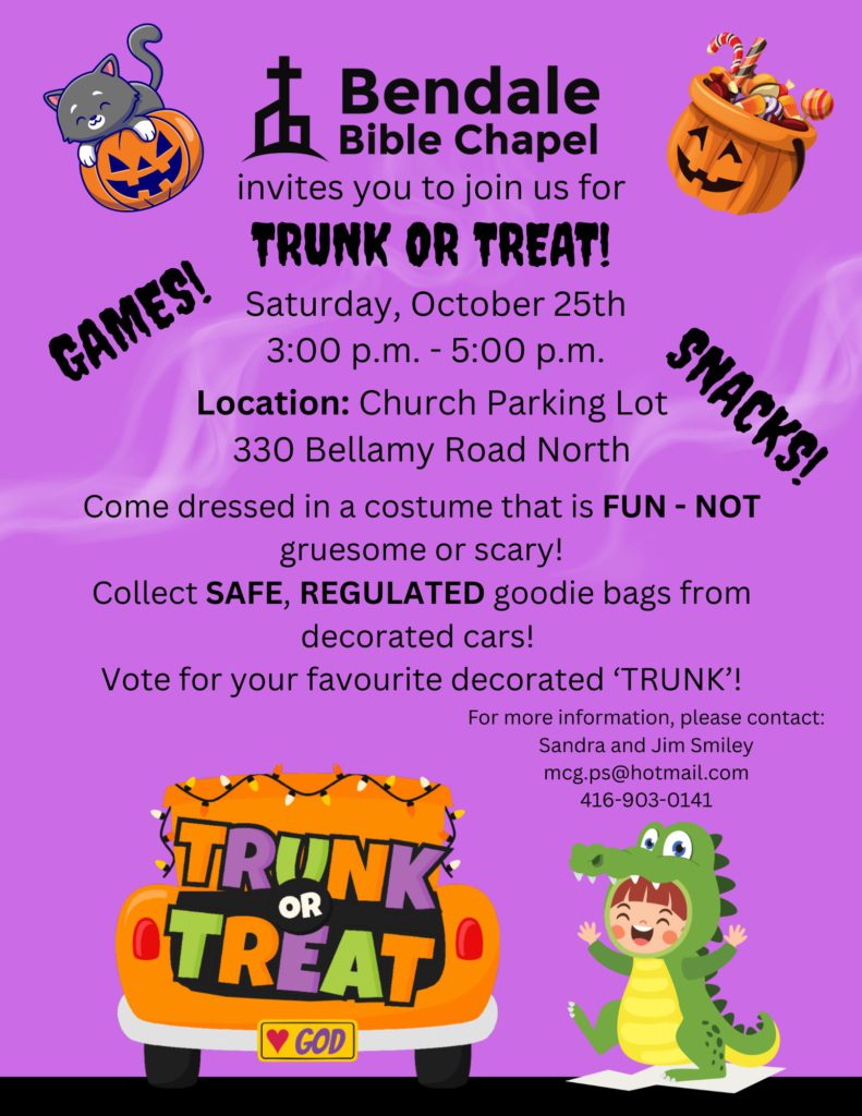 TRUNK or TREAT!!! – Saturday October 25th, 3-5 pm